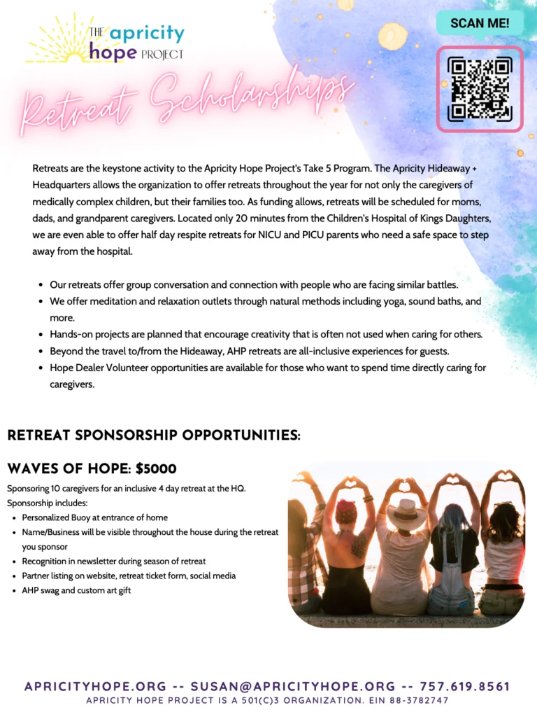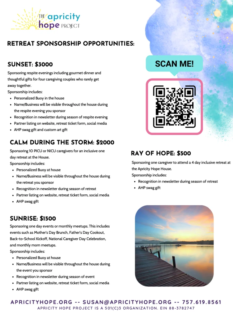 Established in June 2023 with a grand opening on July 7, 2023, the Apricity Hope Hideaway is ready to open it’s doors for caregivers of medically complex kiddos!