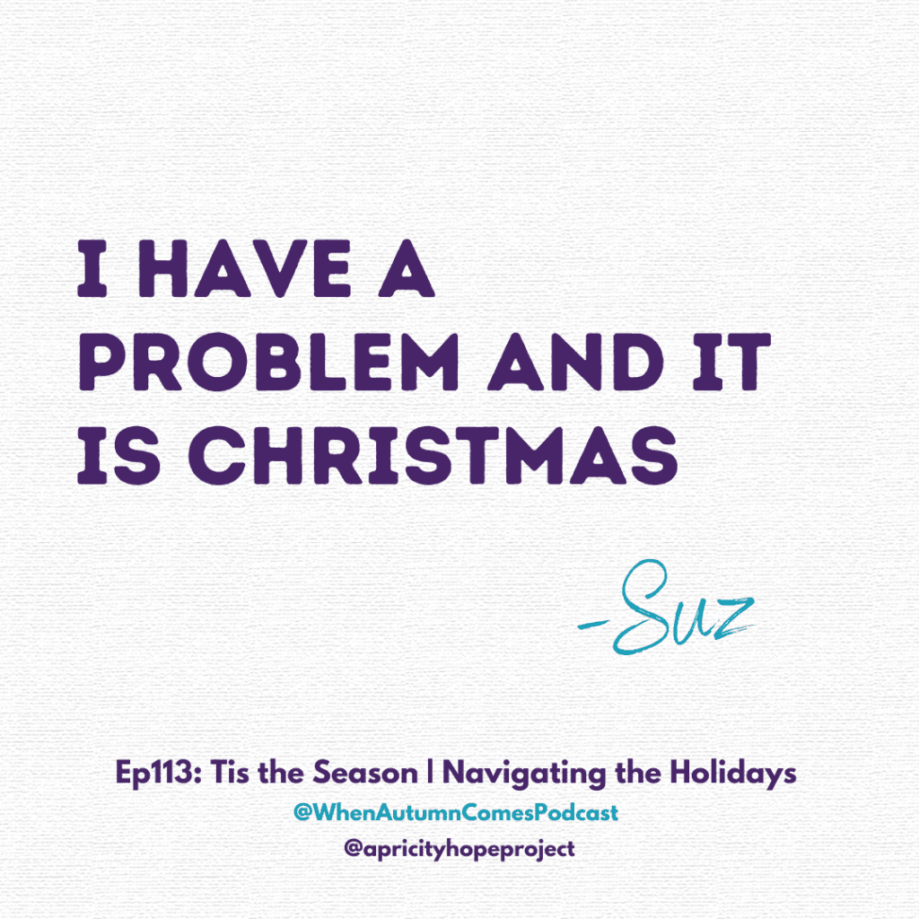 The holidays are tricky to navigate for a lot of us. Throw in a healthy does of special needs and it is easy to spiral into a ball of stress. Have you found ways to make managing the holidays easier? Let us know in the When Autumn Comes Society or send us a DM on Instagram! We’d love to hear from you! While you’re at it, consider supporting the podcast .
